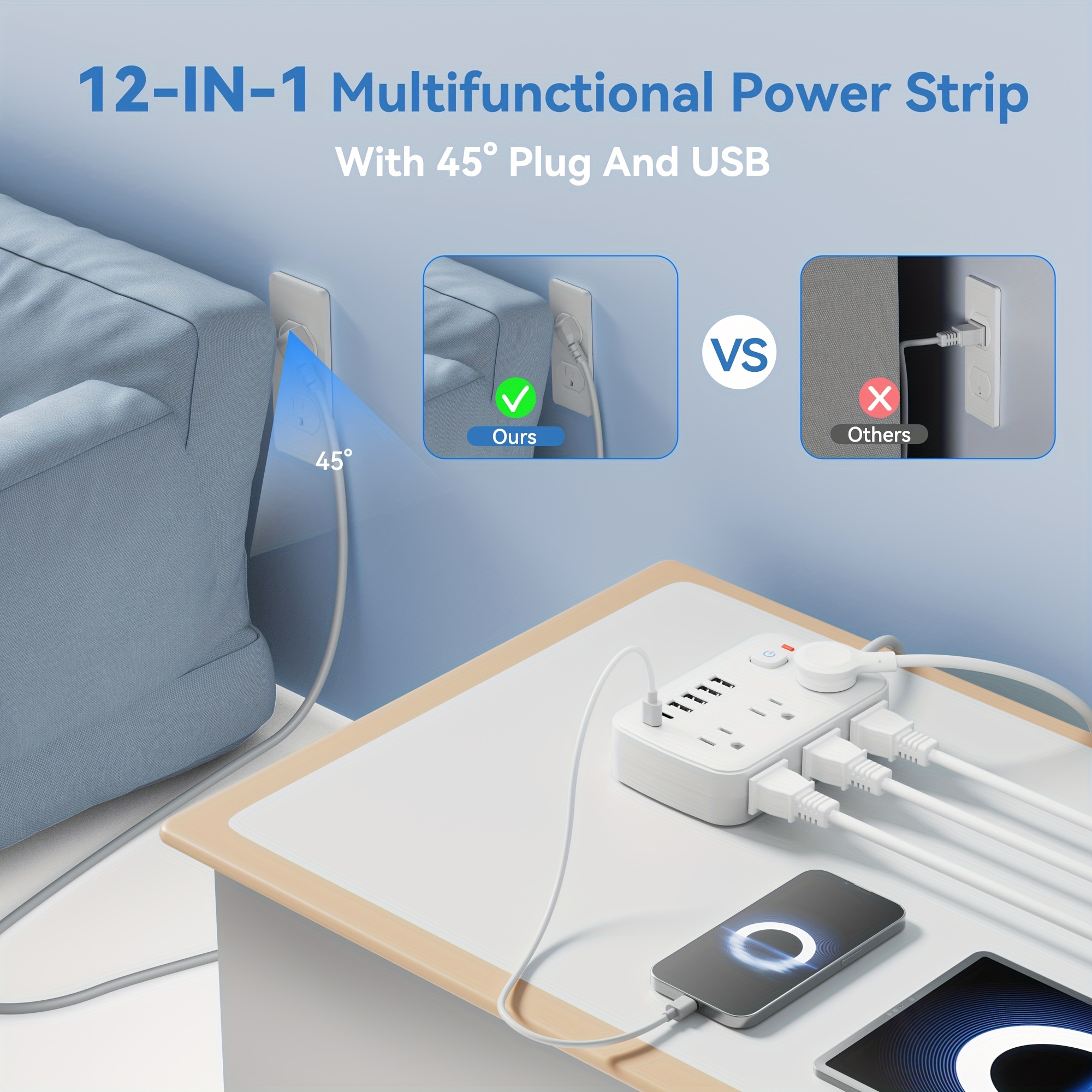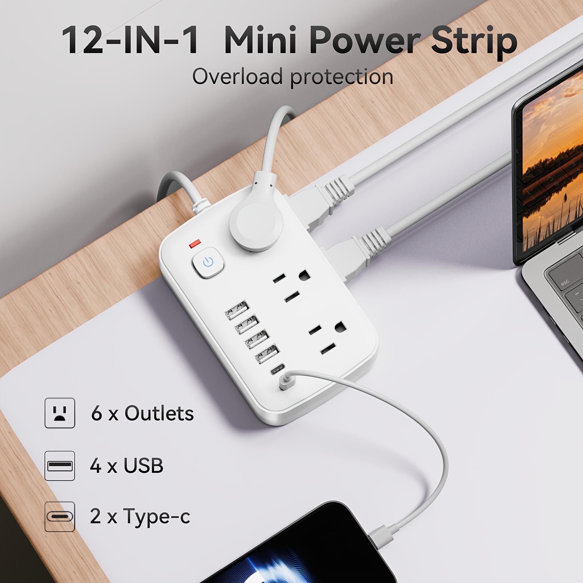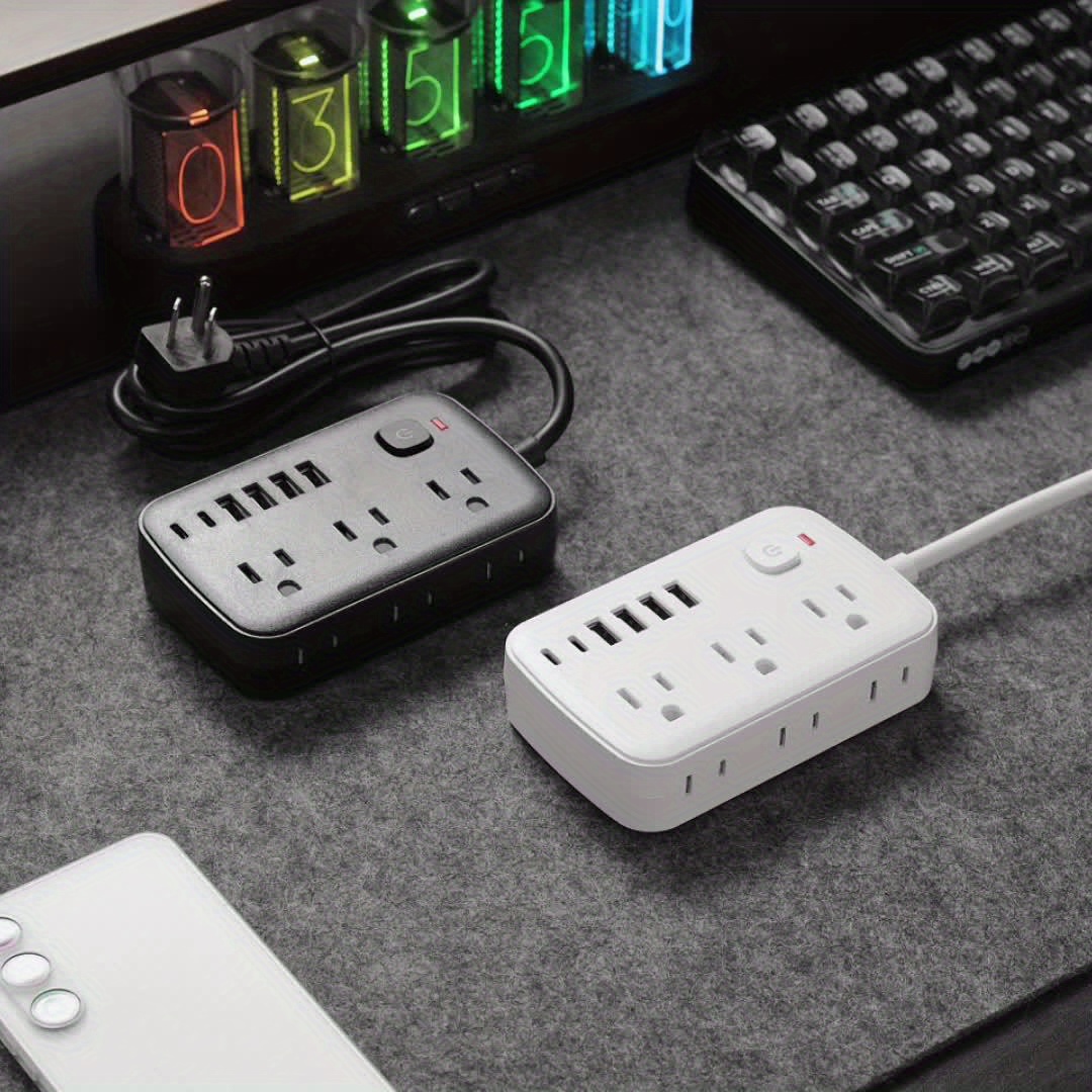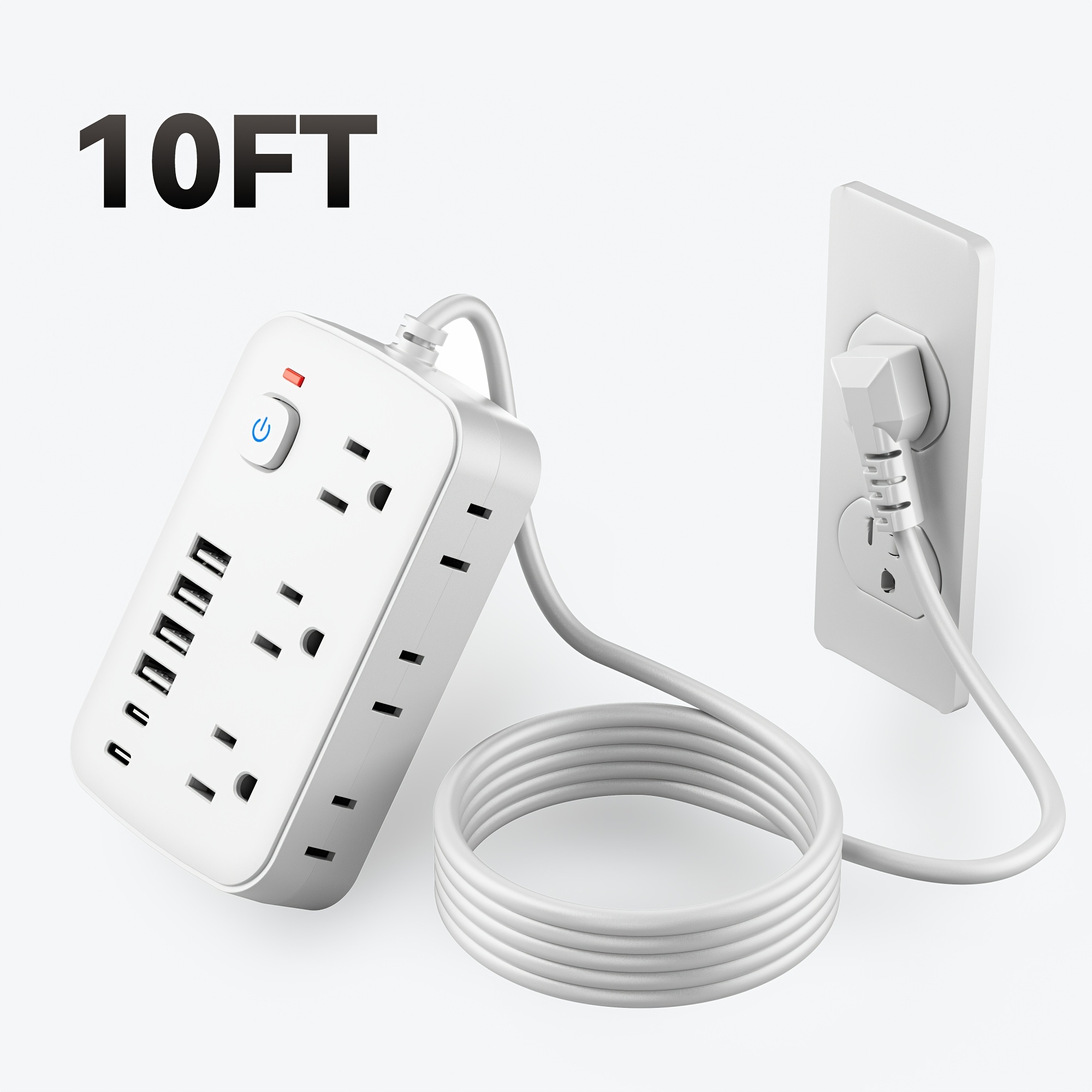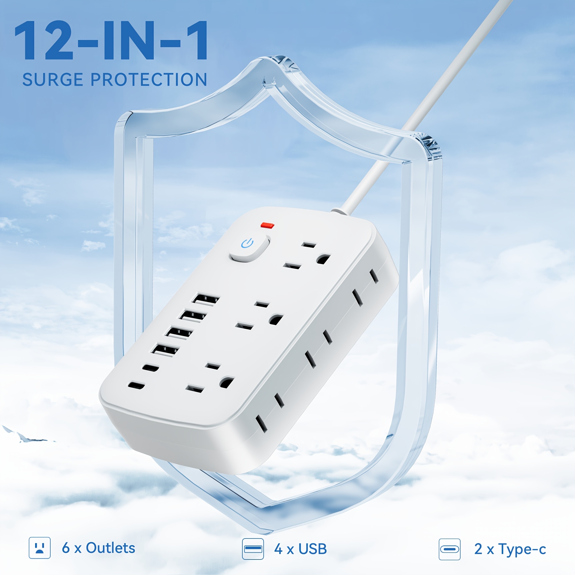 1pc Multi-Outlet Surge Protection Power Strip with USB Port And Switch - 6 AC Outlets, 4 USB-A Ports And 2 Type-C Ports And 5ft/10ft Extension Cord - for Office, Study, Home, And School Use - Power Socket with Overload Protection