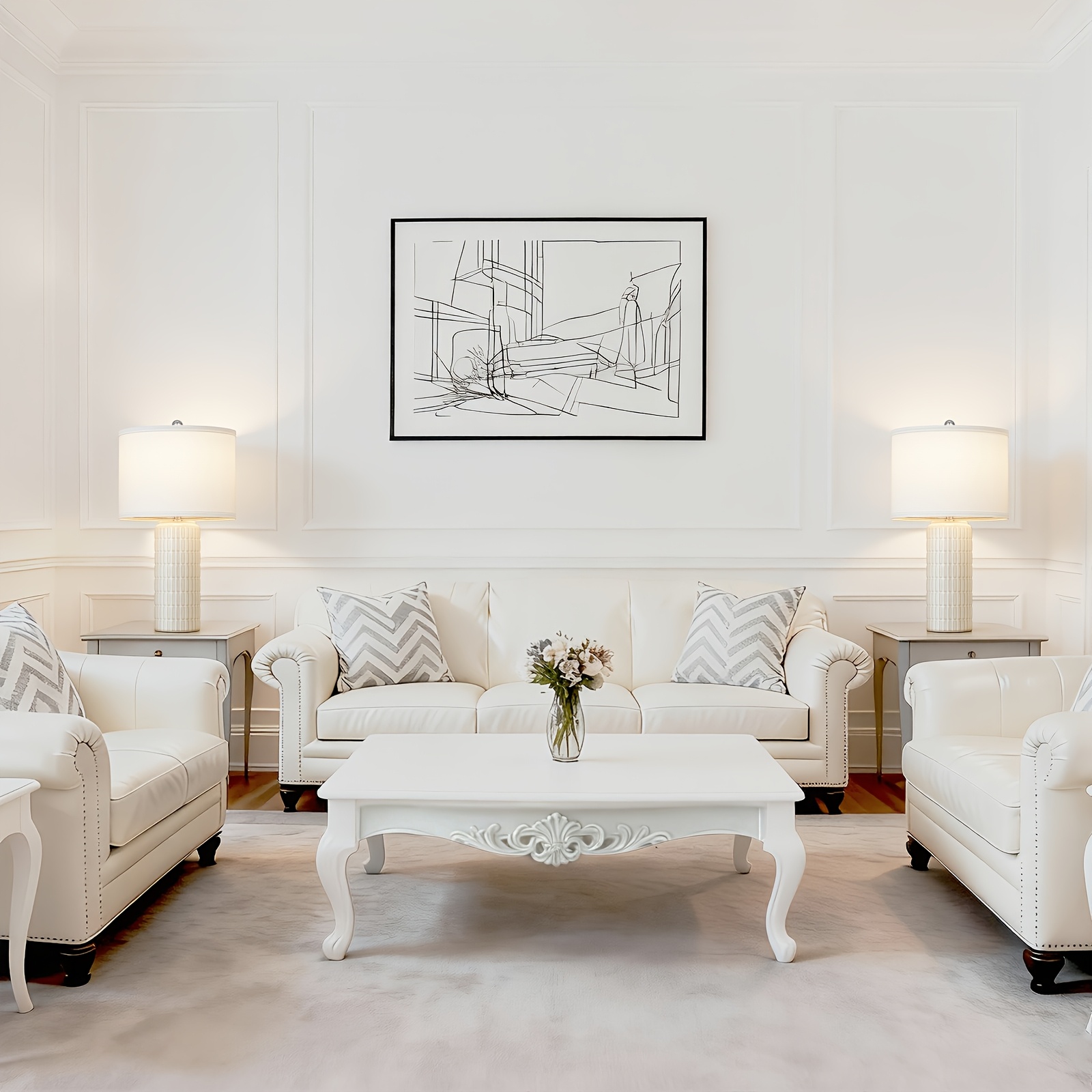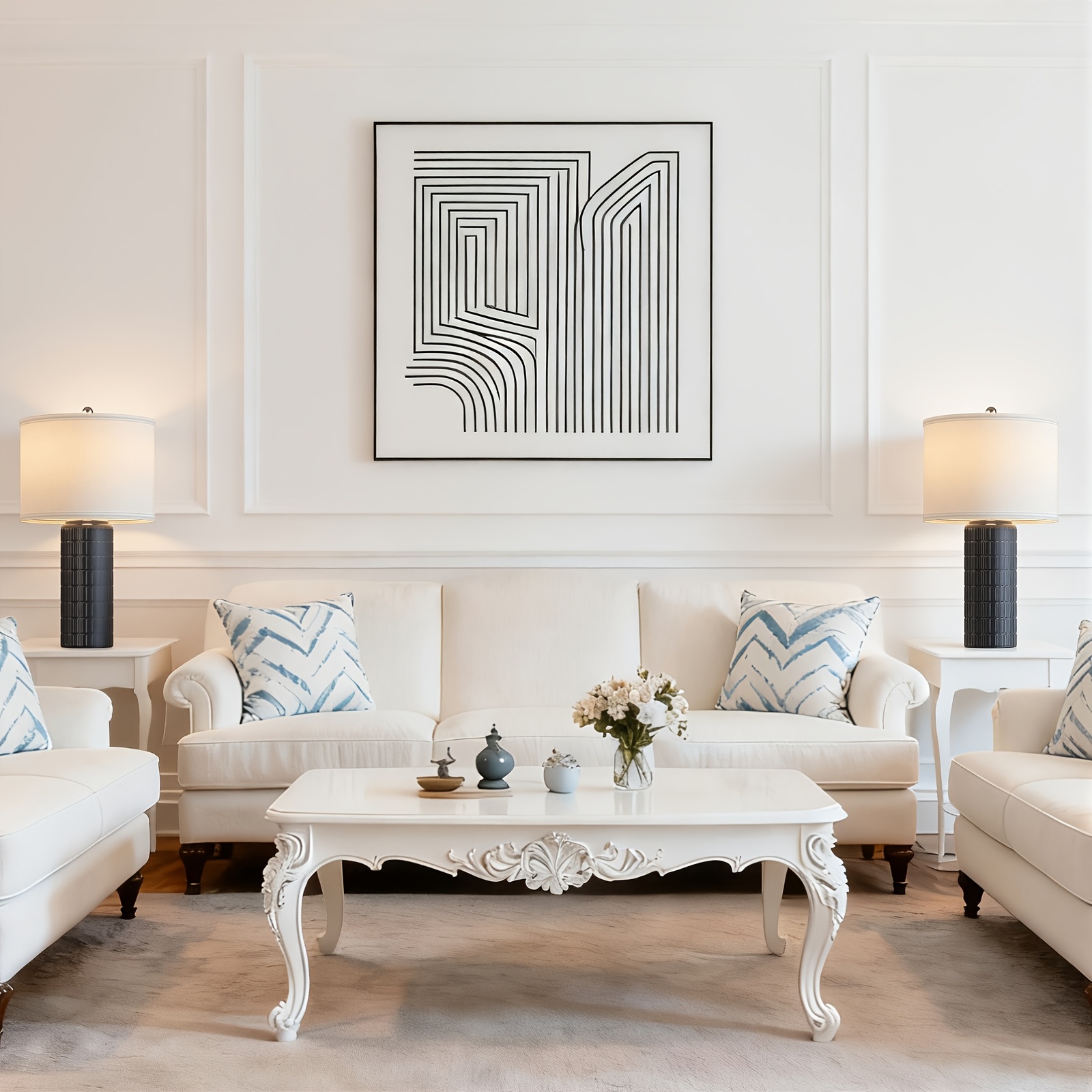 23 Inch Ceramic Table Lamp Set of 2 | Modern Farmhouse Style with White Bedside Lamps for Living Room, Bedroom, Office Desk Decor, Adjustable Lighting with Drum Fabric Shade, Ideal for Reading, Gift Idea