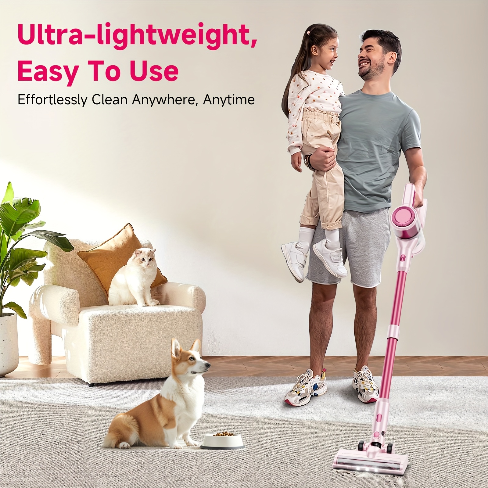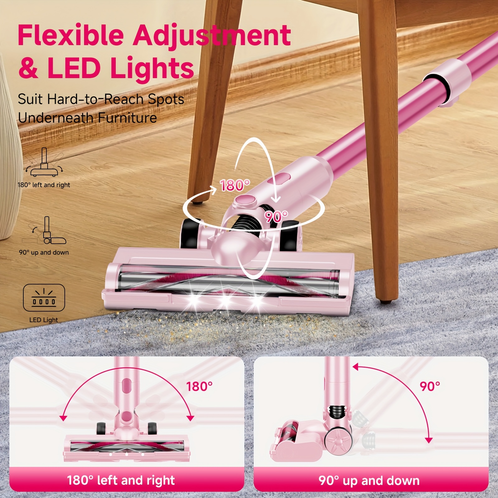 55-59Kpa Cordless Vacuum Cleaner for Home, Car, Hardwood Floor, Carpet, and Pet Hair | Anti-hair Entanglement, Dust Filtration, Lightweight One-handed Handheld, 55-Minute Running Time, Electric LED Brush, ABS Body, Wireless