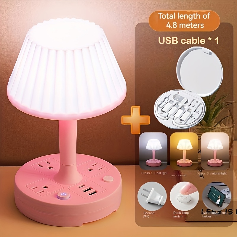 Multi Functional Night Light With Socket, Desk Lamp Socket, Bedroom Bedside Study Light LED Bed Desk Lamp, Book Light, Can Be Directly Used For Mobile Phone Charging, 3 Lights, Freely Adjustable