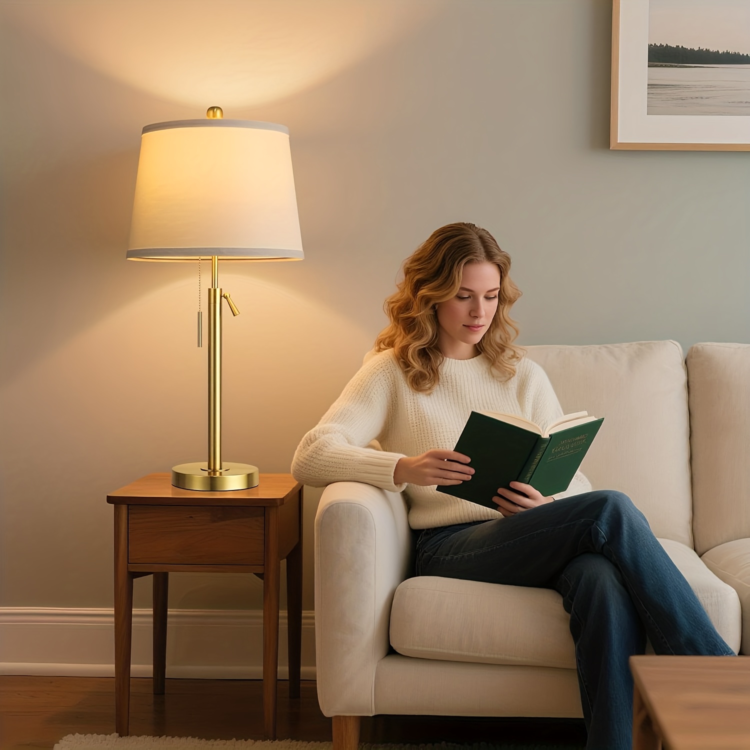 Tall Table Lamps Set Of 2, Modern Golden Table Lamps with White Shade for Living Room, Height Adjustable Nightstand Lamps for Bedroom, 3 Color Temperature Beside Lamps with Pull Chain(Bulbs Included)