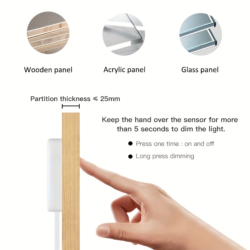 Ultra-Thin In-Ground Touch Sensor Switch DC5-24V 25W with Easy Installation - Hardwired/Powered via Cable for Wood, Acrylic, Stone & LED Lighting - Compatible with Home Systems, Dimmable Lighting Control, No Punching Required