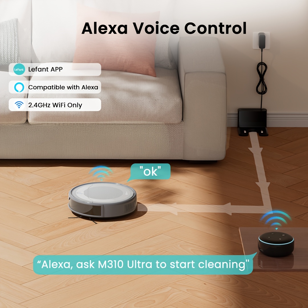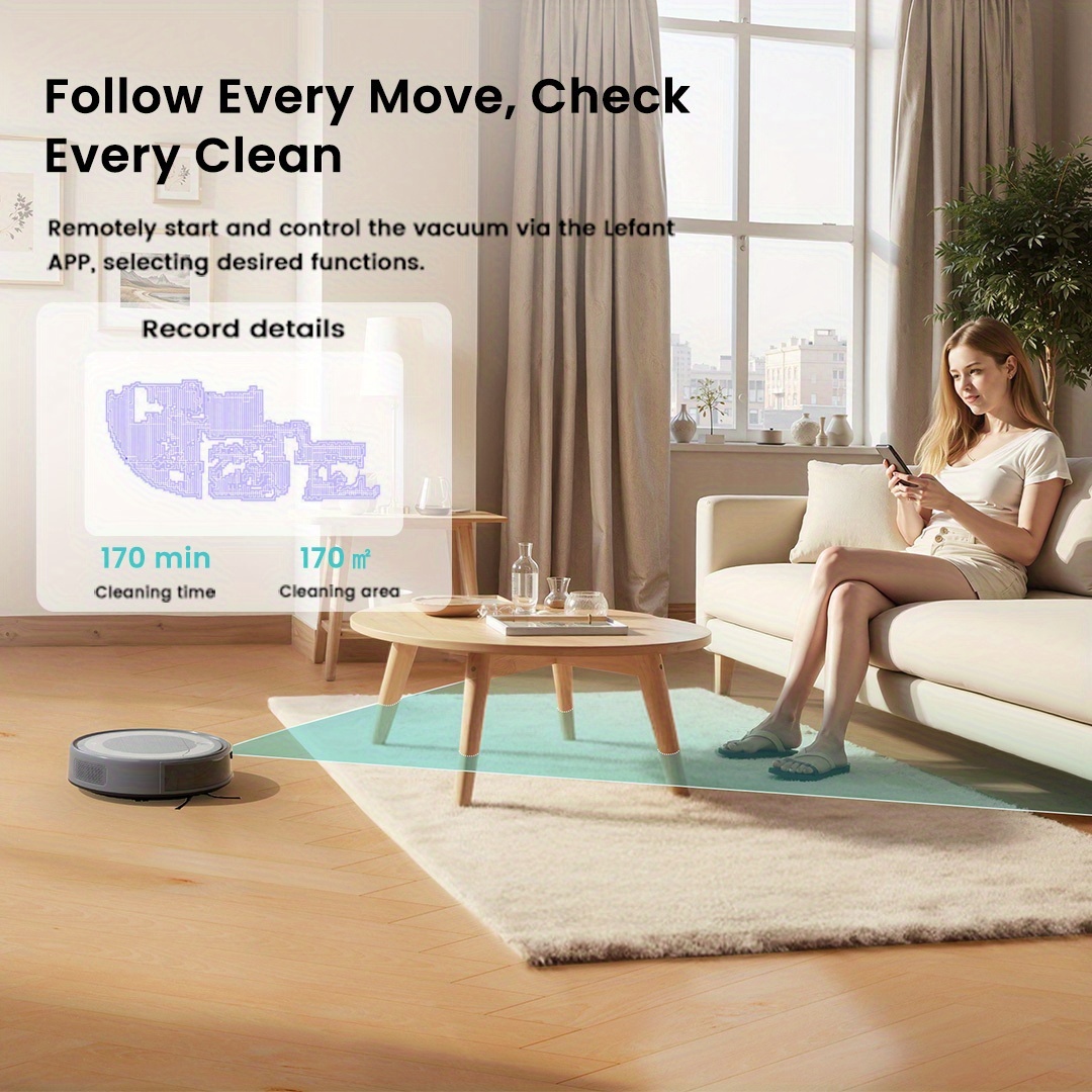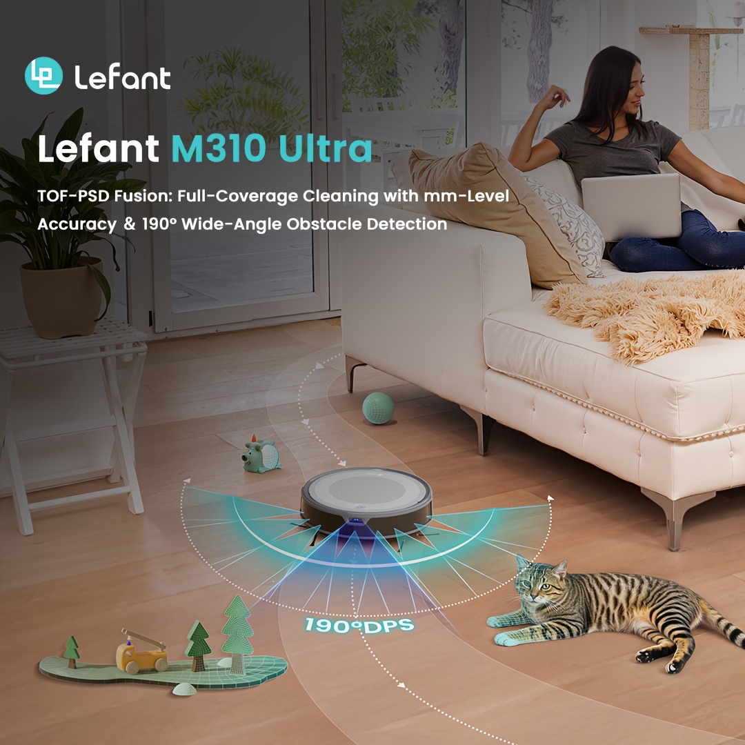 Lefant M310U Robot Vacuum and Mop Combo, 6500Pa Strong Suction, Ultra-Slim Smart Mapping, 190° Obstacle Avoidance, Alexa/WiFi/App Control, 170 Min Runtime, 2-in-1 Sweeper/Mower, Quiet 56dB, Global Voltage (110-240V)