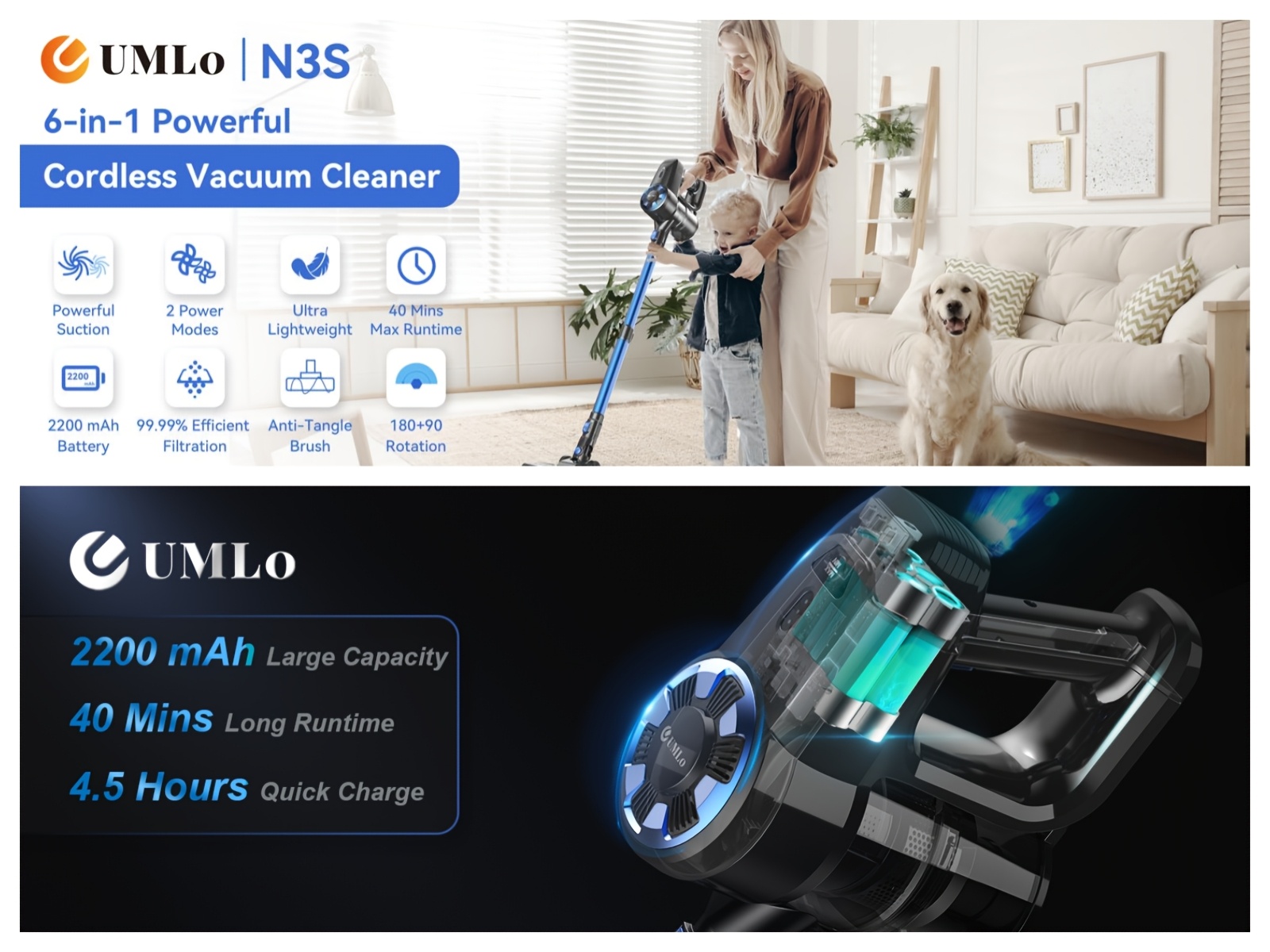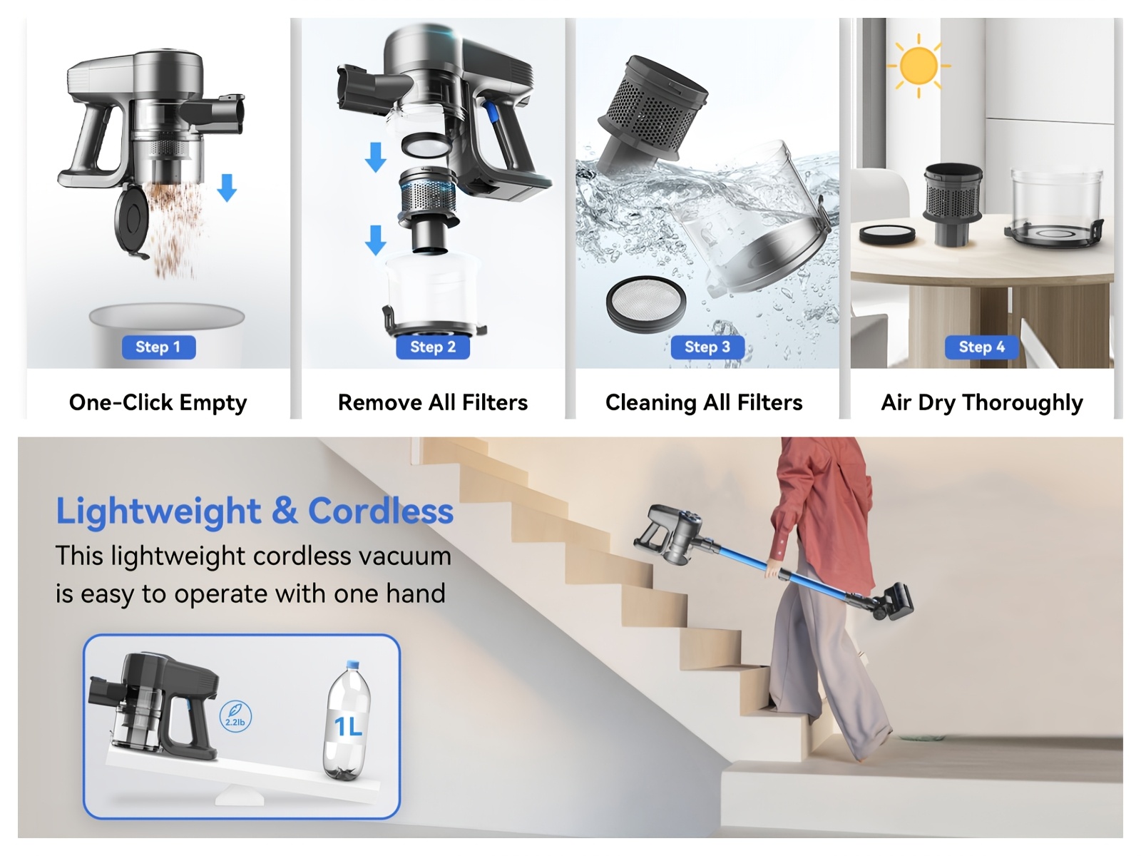 New Cordless Vacuum Gleaner, 60kpa, 6-in-1 Ultra-Lightweight Stick Vacuum With 2200 MAhBattery, 40 Mins Max Runtime, Powerful Rechargeable Vacuum Cleaners, For HomeCarpet & Pet Hair