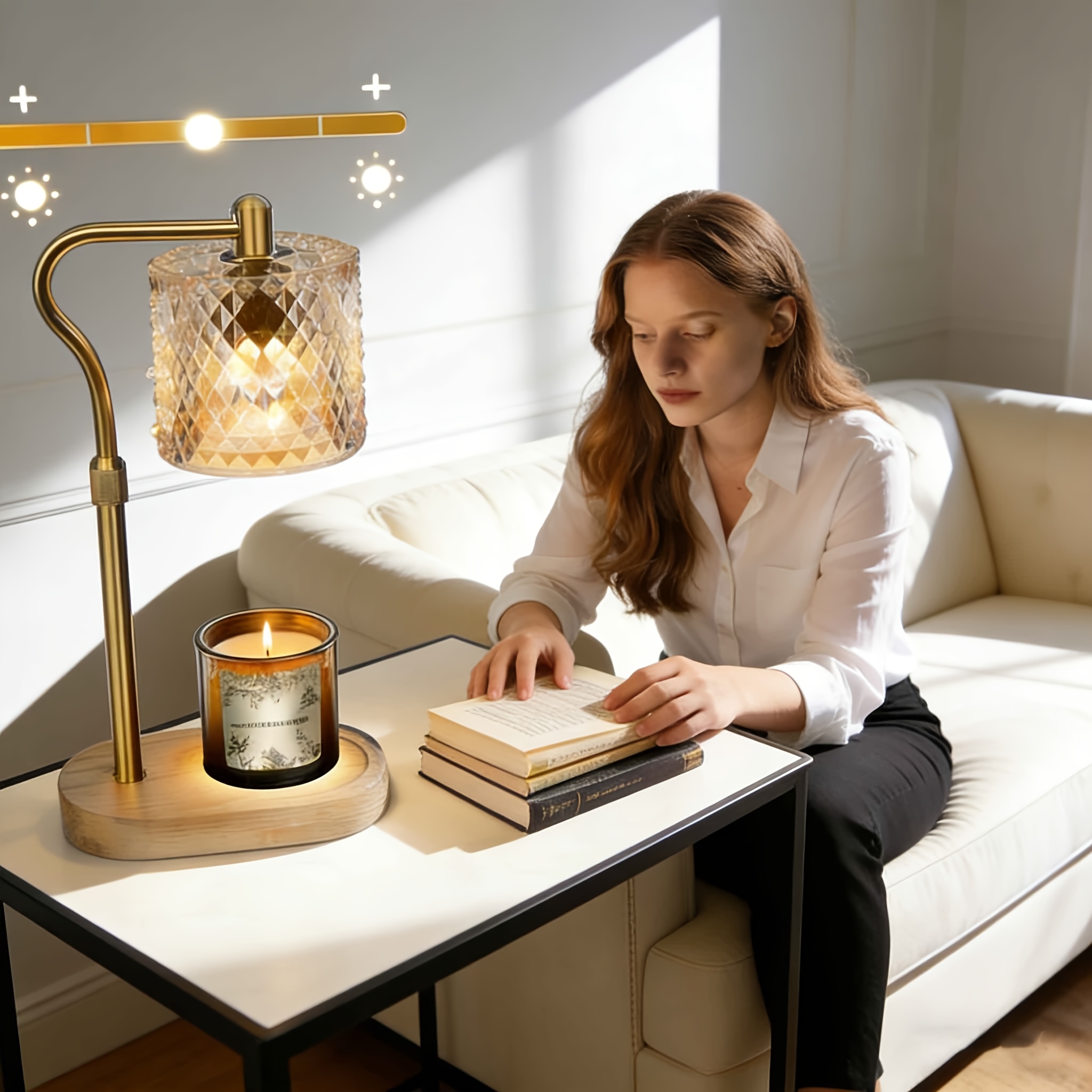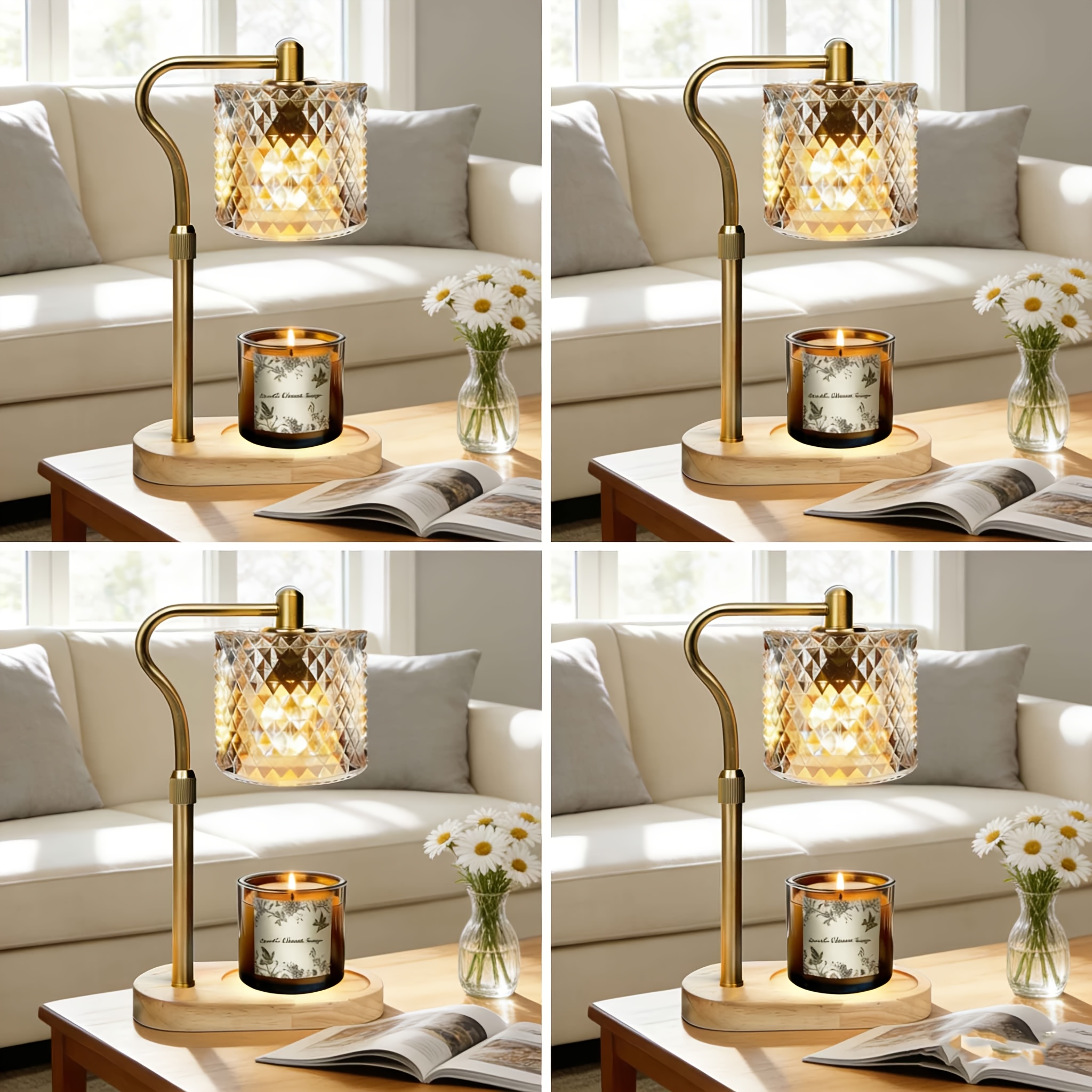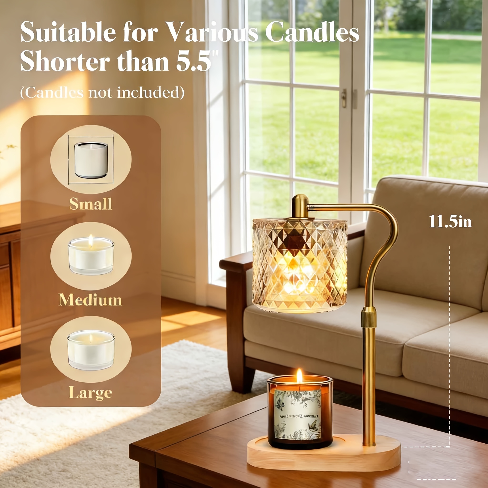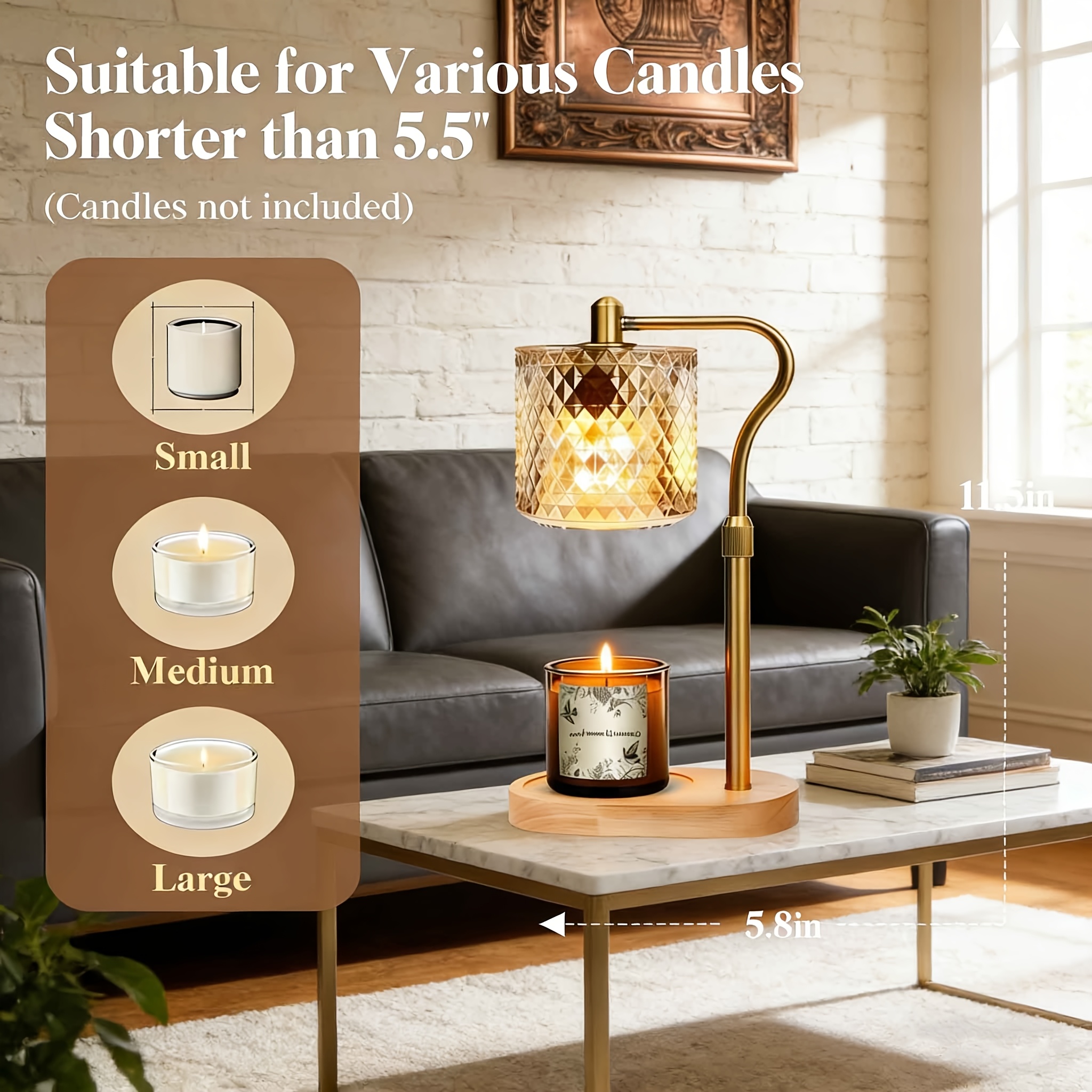 Adjustable Height Modern Wax Warmer Lamp with Wooden Base -Dimmable Brightness & Timer Function, Premium Material Ambient Lighting, Romantic Home Decor Gift for Bedroom Living Room (Bulb Not Included)