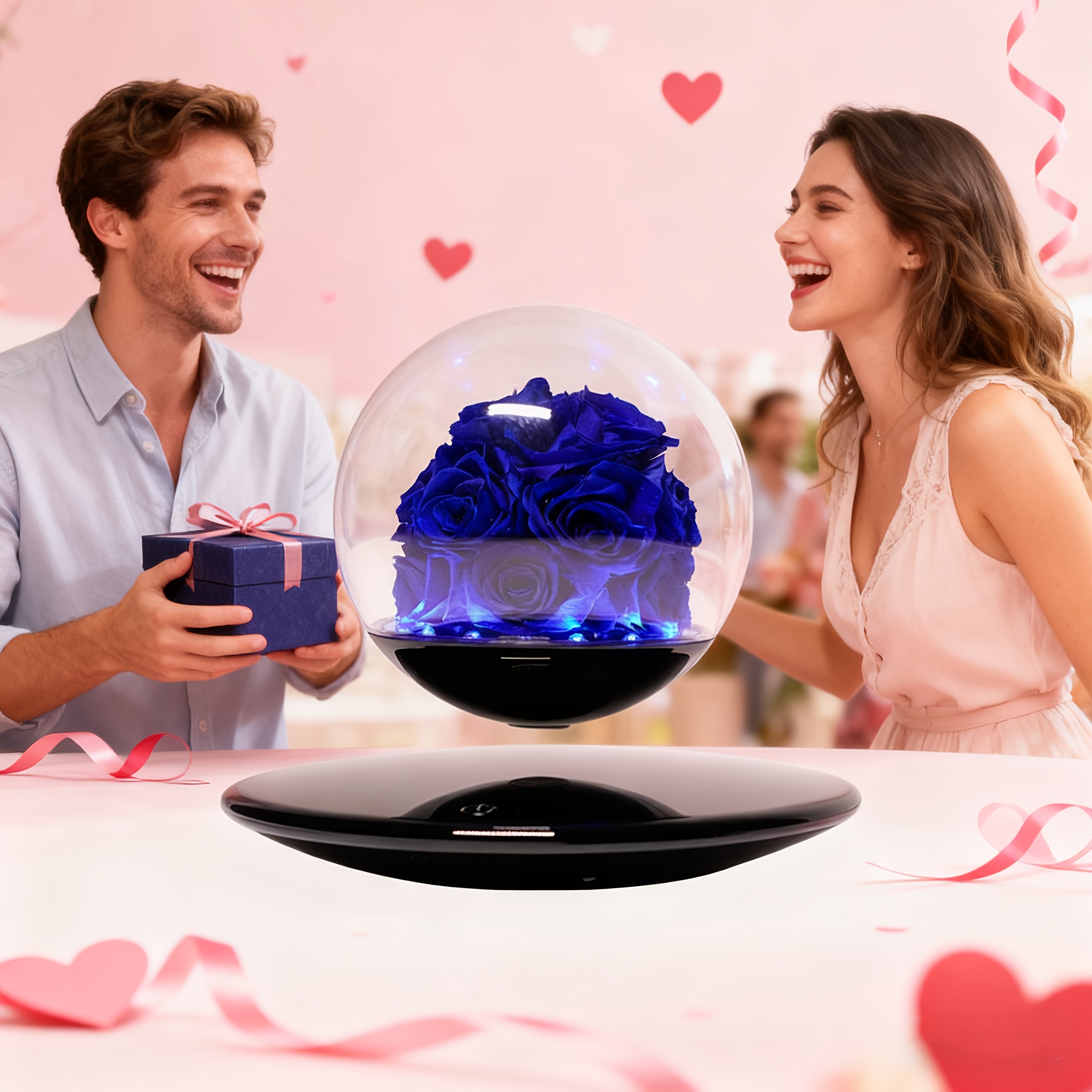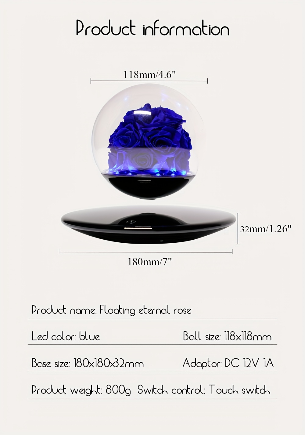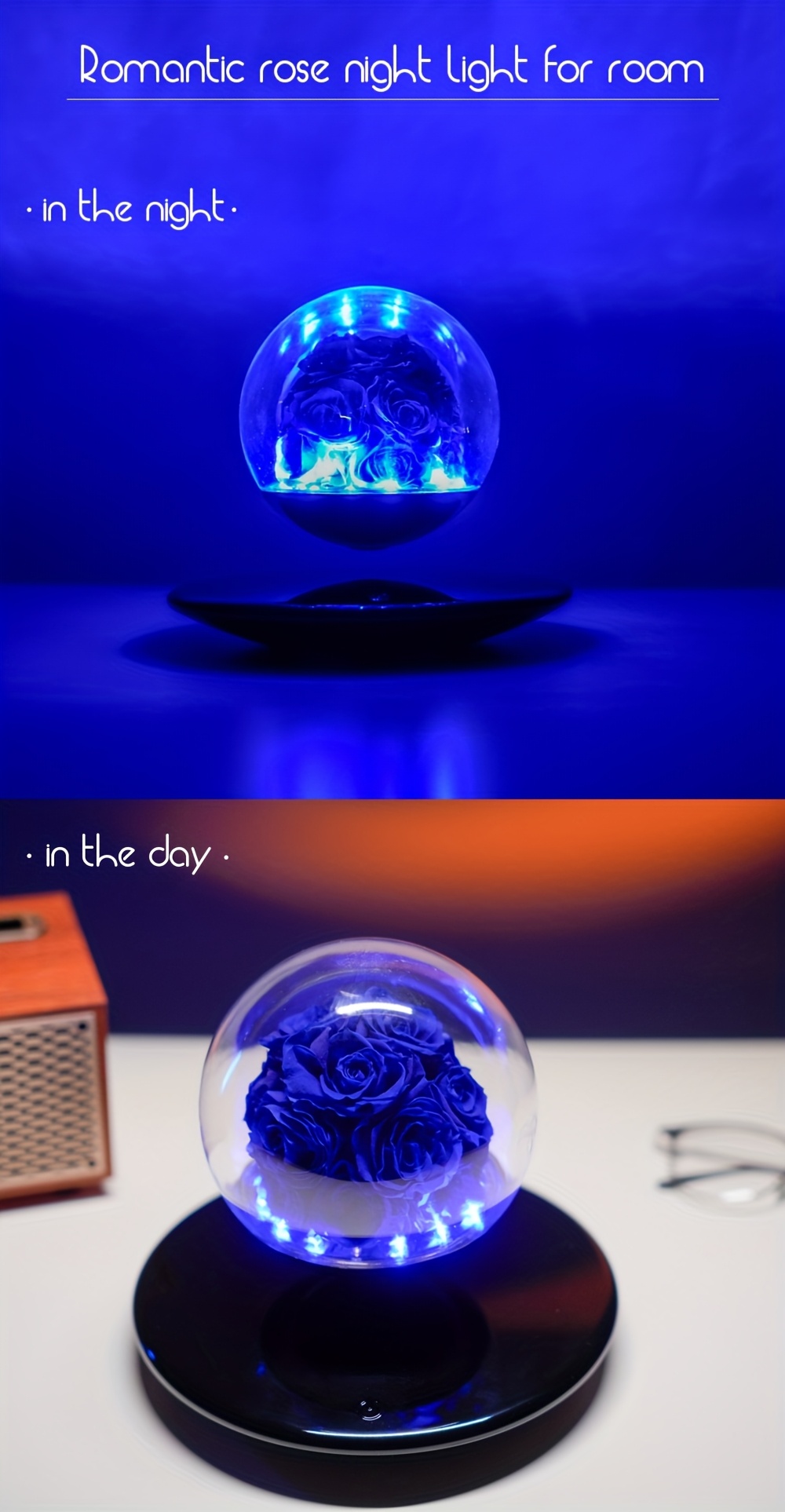 Magnetic Levitating Preserved Rose In Glass Dome with LED Light, Touch Control Light, Floating Forever Flowers Lamp for Valentine'S Day, Anniversary Halloween Christmas, Rose Lamp Unique Gift for Wife Girlfriend Women, Home Decor, Romantic Gift