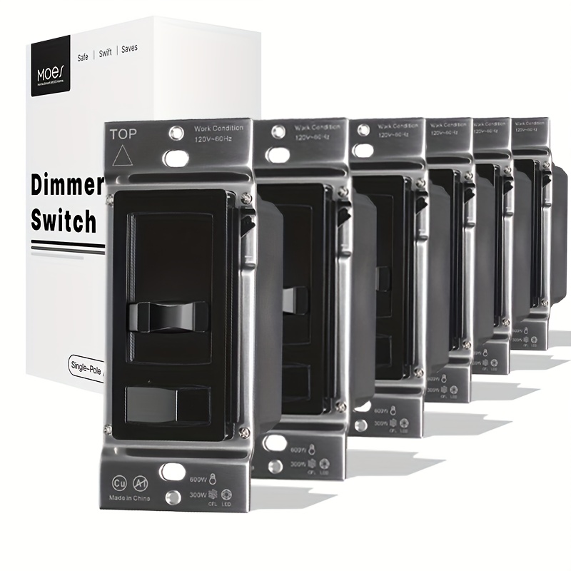 MOES Black Dimmer Light Switch, 3 Way & Single Pole Dimmable for LED, CFL, Incandescent, Halogen, 600Watt Max, ON/Off with Dimming Slide for Bedroom Hallway, No Neutral Wire Required Without A Panel