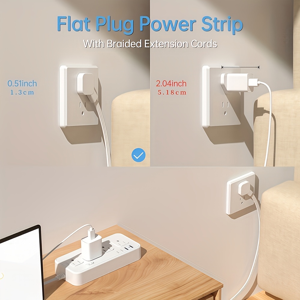 Power Adapter 12-in-1 with 4 USB Ports, 2 USB-Cs and 8 AC Power Outlets, 5ft Extension Cable with Surge Protection Switch for Fast Charging up to 30%, Ideal for Home, Office, Travel and Multi-device Charging